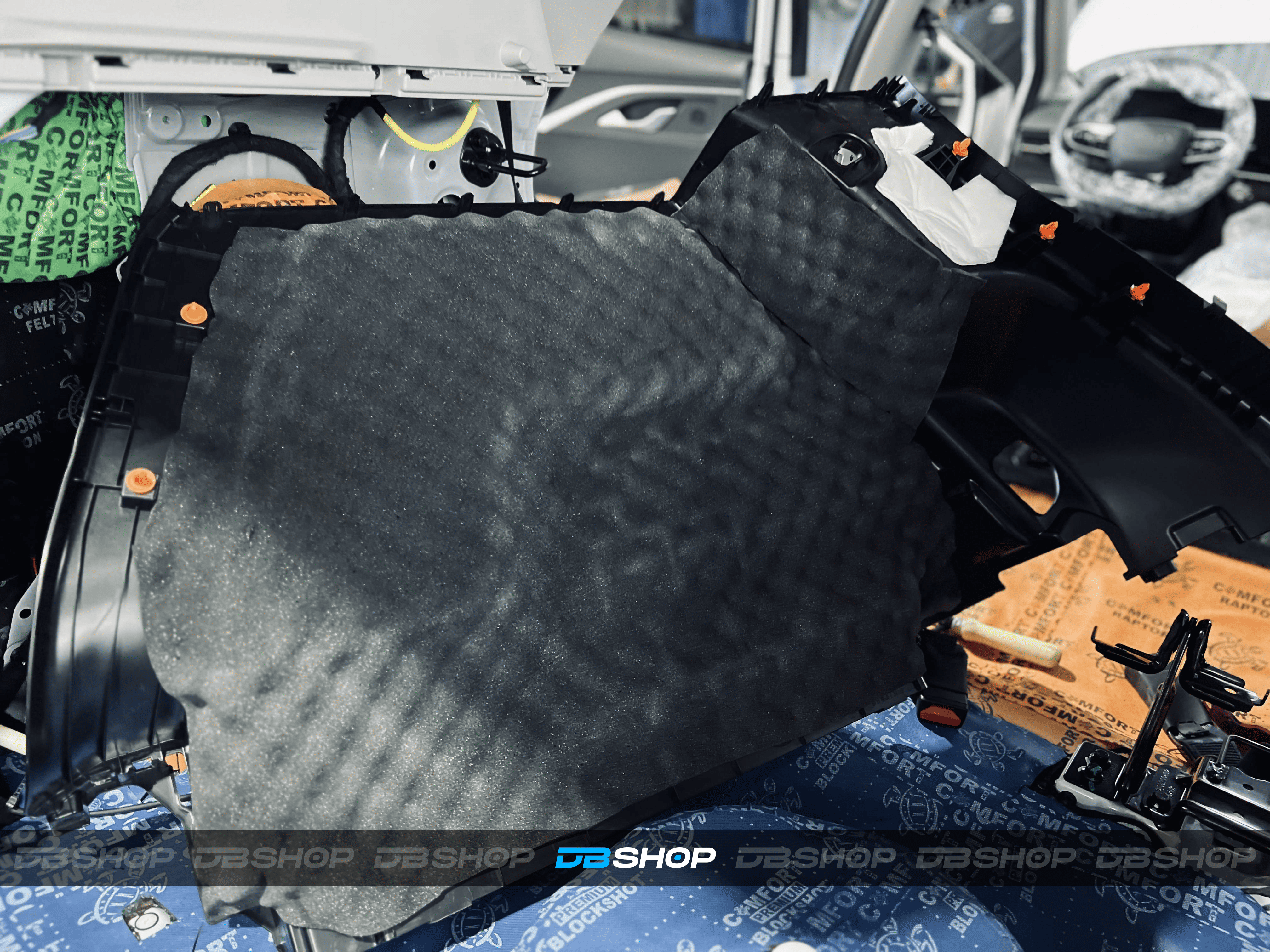 Работа началась с демонтажа обшивки салона и багажника. Первым слоем на дно салона и дно багажника нанесли виброизоляцию Comfort Mat Premium Viper, а на стенки багажника – Comfort Mat Vespa.